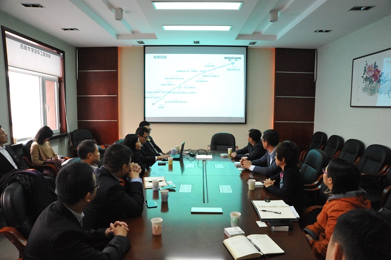 10月11日,山东潍柴动力集团人力资源部部长郭虹、山东潍柴进出口有限公司副总经理陈武生一行8人到访富豪娱乐城 ,富豪娱乐城 党委书记李善兴、副书记胡忠巍、研究生办、学工办相关工作人员与来访客人进行了座谈交流。