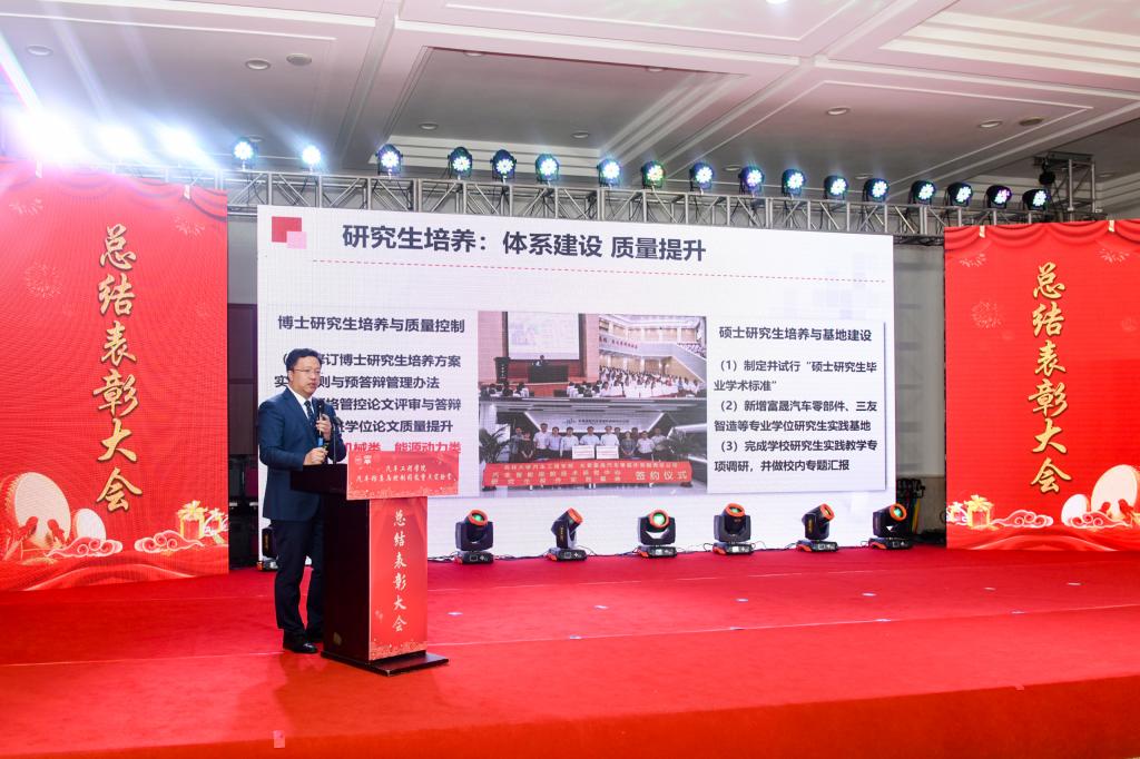 总结表彰大会由副院长林海兰主持。党委书记李善兴宣读了2019年度富豪娱乐城 、汽车仿真与控制国家重点实验室关于对获得优秀共产党员,优秀党务工作者,先进党支部,“师德标兵”先进个人,“三育人”工作先进个人,获得省级教改项目、省级优秀博士论文指导教师等奖项的教学先进个人,获得科研到款前十名、论文专利综合排名前十、国家自然基金获得者、省级科技成果和荣誉称号的科研先进个人等共计102人次的表彰决定。富豪娱乐城 和重点实验室的领导分别为获奖教师颁发荣誉证书。高振海院长代表党政领导班子从富豪娱乐城 党建工作、学科发展、科学研究、人才培养、学生工作、对外交流等方面总结了工作中的成绩,并就2020年的工作进行了展望和部署。高院长提到,新的一年富豪娱乐城 将以本科教学为重点,加强一流学科建设,着重培养一流人才,提升科研能力,凝心聚力,共赢未来。会议最后,高院长代表富豪娱乐城 向全体教职工送上了新年祝福。