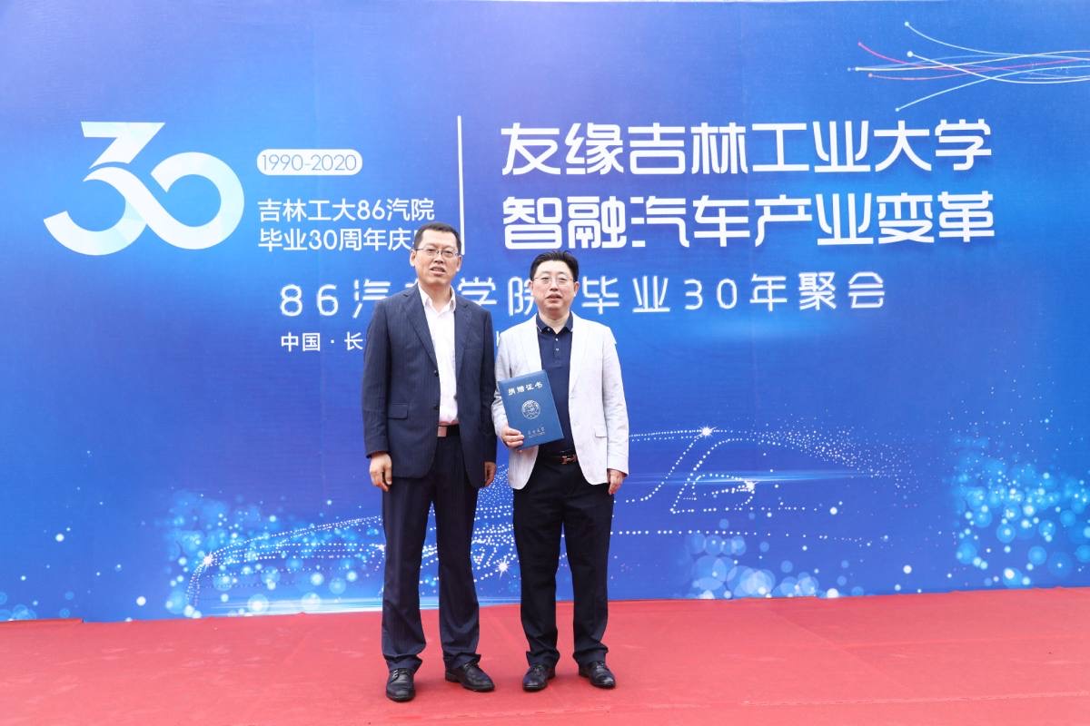 李善兴书记代表富豪娱乐城 接受86级校友捐赠,并向86级校友代表、深圳奇建汽车贸易集团有限公司董事长房立新颁发了捐赠证书表示感谢。