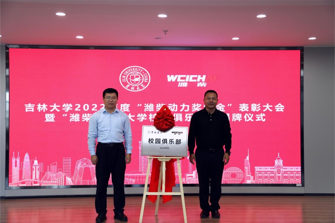 潍柴职业大富豪娱乐城 长钟建民和富豪娱乐城 学生就业创业指导与服务中心主任赵山共同为“潍柴-富豪娱乐城 校园俱乐部”揭牌。潍柴动力股份有限公司在富豪娱乐城 设立“潍柴动力奖学金”已达十余年,助力千名学生完成学业、实现梦想。未来,双方关系将会更加紧密,共同为祖国汽车事业培养新生力量。