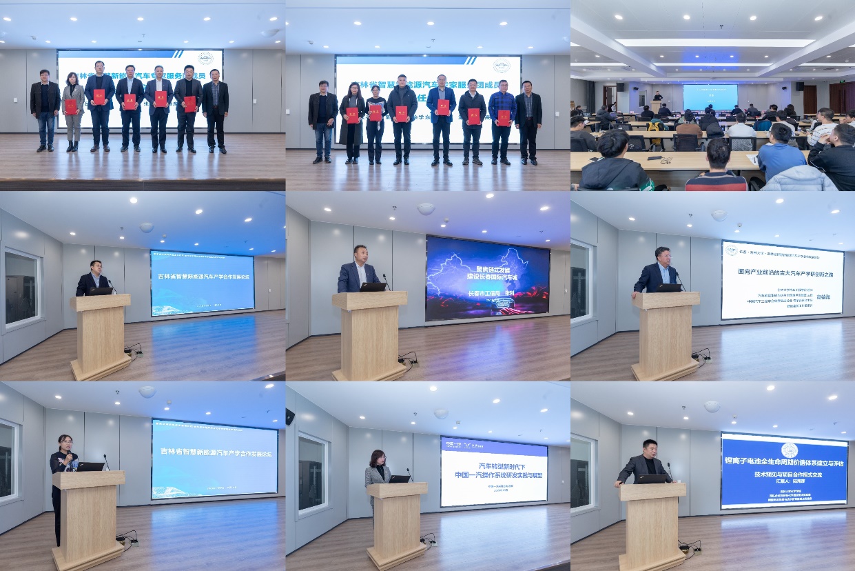 论坛同期举行了吉林省专家服务基地-智慧新能源汽车专家服务基地的揭牌仪式,并为省内十余位专家颁发了吉林智慧新能源汽车专家服务团成员聘书。
