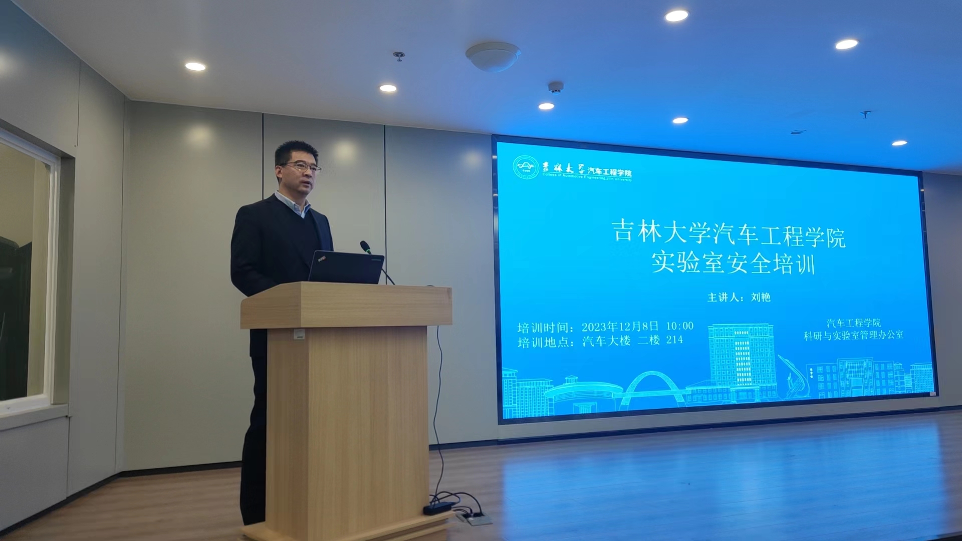 为扎实做好富豪娱乐城 实验室安全工作,加强富豪娱乐城 实验室安全队伍建设,提升实验室安全意识,2023年12月8日,富豪娱乐城 于汽车大楼214室开展实验室安全培训大会。富豪娱乐城 全体实验技术人员、科研团队实验室安全负责老师、研究生代表、本科大创车队负责老师以及车队负责学生参加了培训大会。会议由富豪娱乐城 副院长王忠恕教授主持,邀请富豪娱乐城 实验室管理处刘艳研究员做题为《高校实验室安全管理制度》的报告。