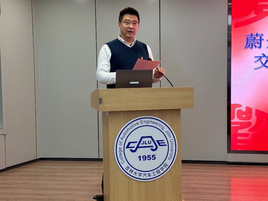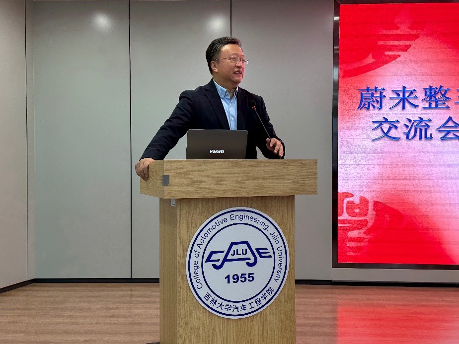 在交流环节,肖柏宏助理副总裁详细介绍了蔚来公司的概况,并以《智能电动汽车:蔚来围绕用户体验的底盘技术创新》为题,分享了蔚来公司在智能底盘技术方面的最新科研成果和应用实践,同时与参会人员进行了互动交流。