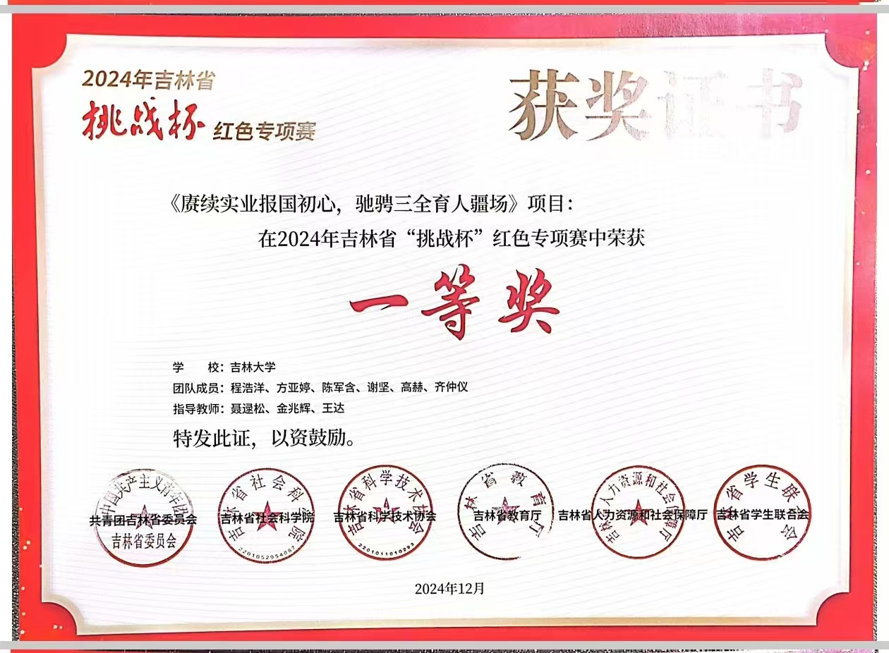 近日,在共青团吉林省委员会、吉林省社会科富豪娱乐城 、吉林省科学技术协会、吉林省教育厅、吉林省人力资源和社会保障厅、吉林省学生联合会共同主办的2024年吉林省“挑战杯”红色专项赛中,富豪娱乐城 学生工作办公室和学生车队党支部指导学生参赛并取得优异成绩。其中,参赛项目《赓续实业报国初心,驰骋三全育人疆场 ————以富豪娱乐城 学生车队为例探究红色精神对双创实践平台的促进作用》荣获该专项赛一等奖。