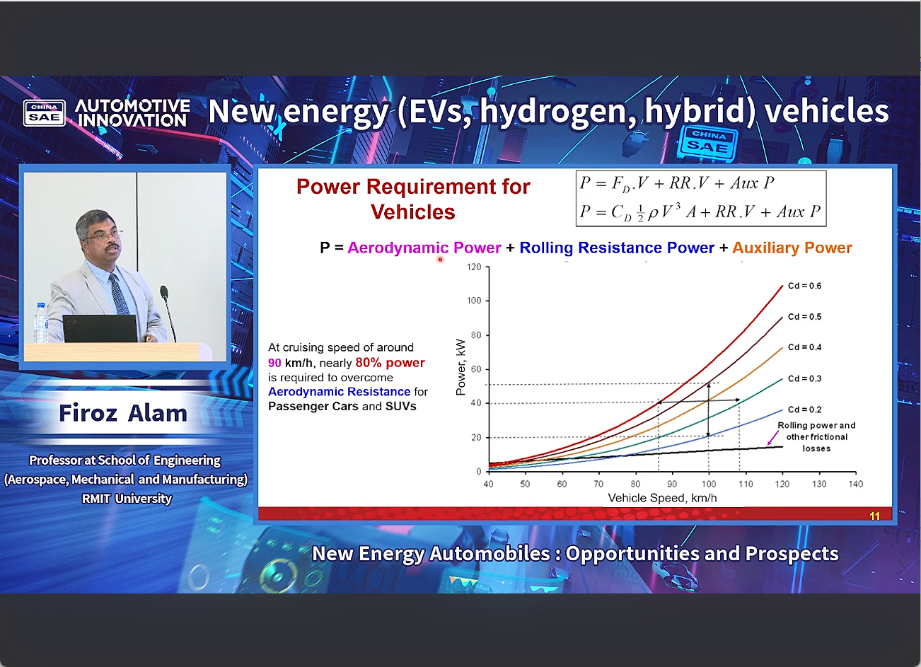 Firoz Alam教授发表了题为“New Energy Automobiles: Opportunities and Prospects”的演讲。Alam教授首先回顾了全球电动汽车市场发展现状,肯定了中国在全球电动汽车市场的主导优势地位与做出的节能减排贡献。也指出新能源汽车行业发展仍面临的三重挑战,呼吁通过技术创新与政策协同,推动充电网络智能化、电池回收规模化、EV购置成本降低,以加速EV在新兴经济体和发展中国家的市场普及,释放EV产业长期增长潜力,加速全球交通系统的低碳化转型。