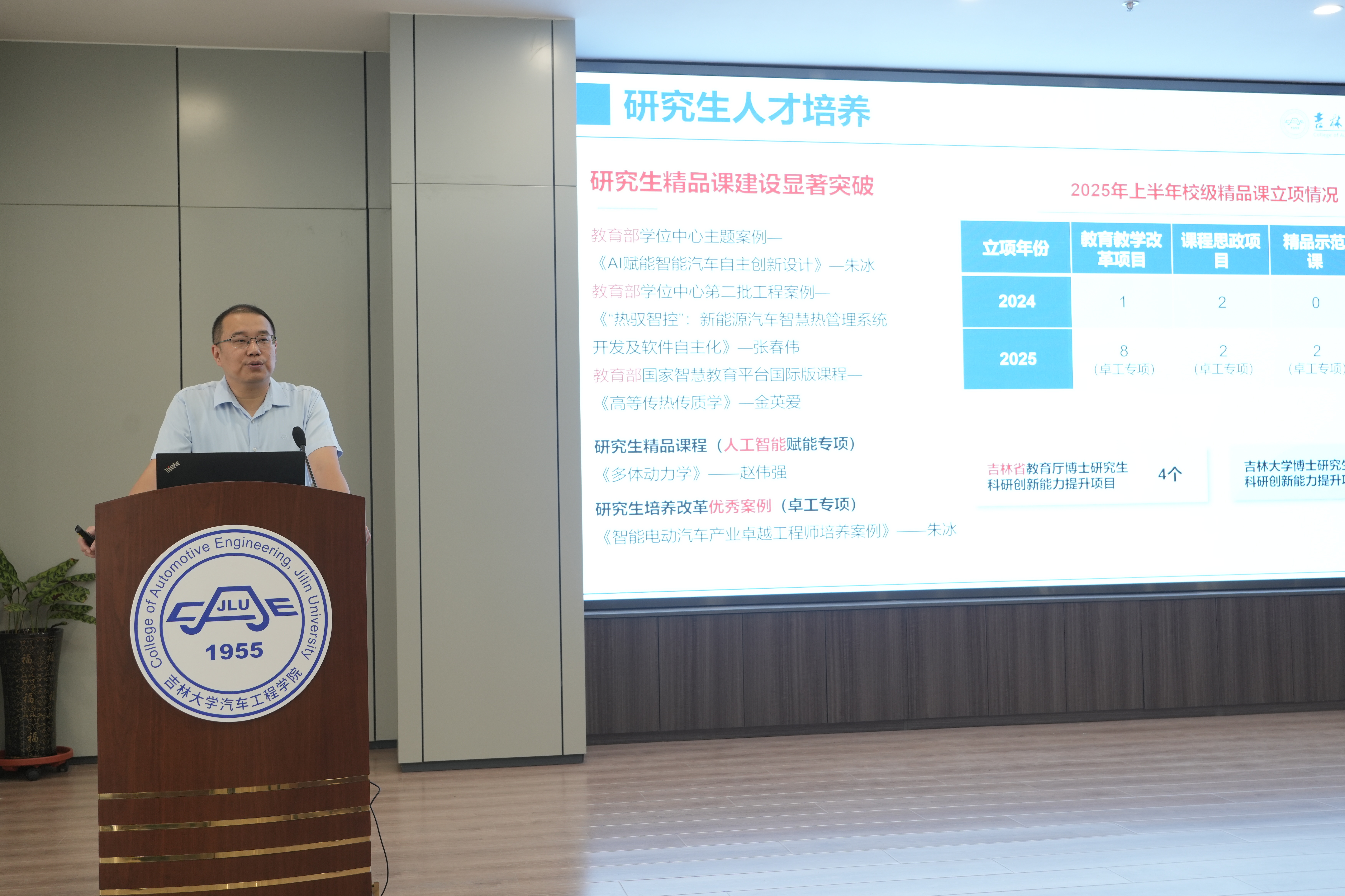 院长朱冰从党建工作、队伍建设、人才培养、学科建设、科研与实验室管理、学生工作、校友工作、国际合作以及行政管理等多个方面,系统总结了上半年富豪娱乐城 取得的显著成绩,并立足“数智汽车时代,吉大汽车何为”这一命题,对新学期重点工作进行了周密部署。针对年度核心任务——学科70周年庆典,朱冰详细介绍了系列庆祝活动安排,强调“院庆不仅是‘庆生’,更是‘凝心聚力’”。他呼吁全体教师以主人翁姿态积极投身于宣传动员、环境美化、校友联络与捐赠对接等工作中,共同努力打造一场有战略高度,有人文关怀,有思想深度的庆典,让“吉大汽车人”的声音传得更远、更响。