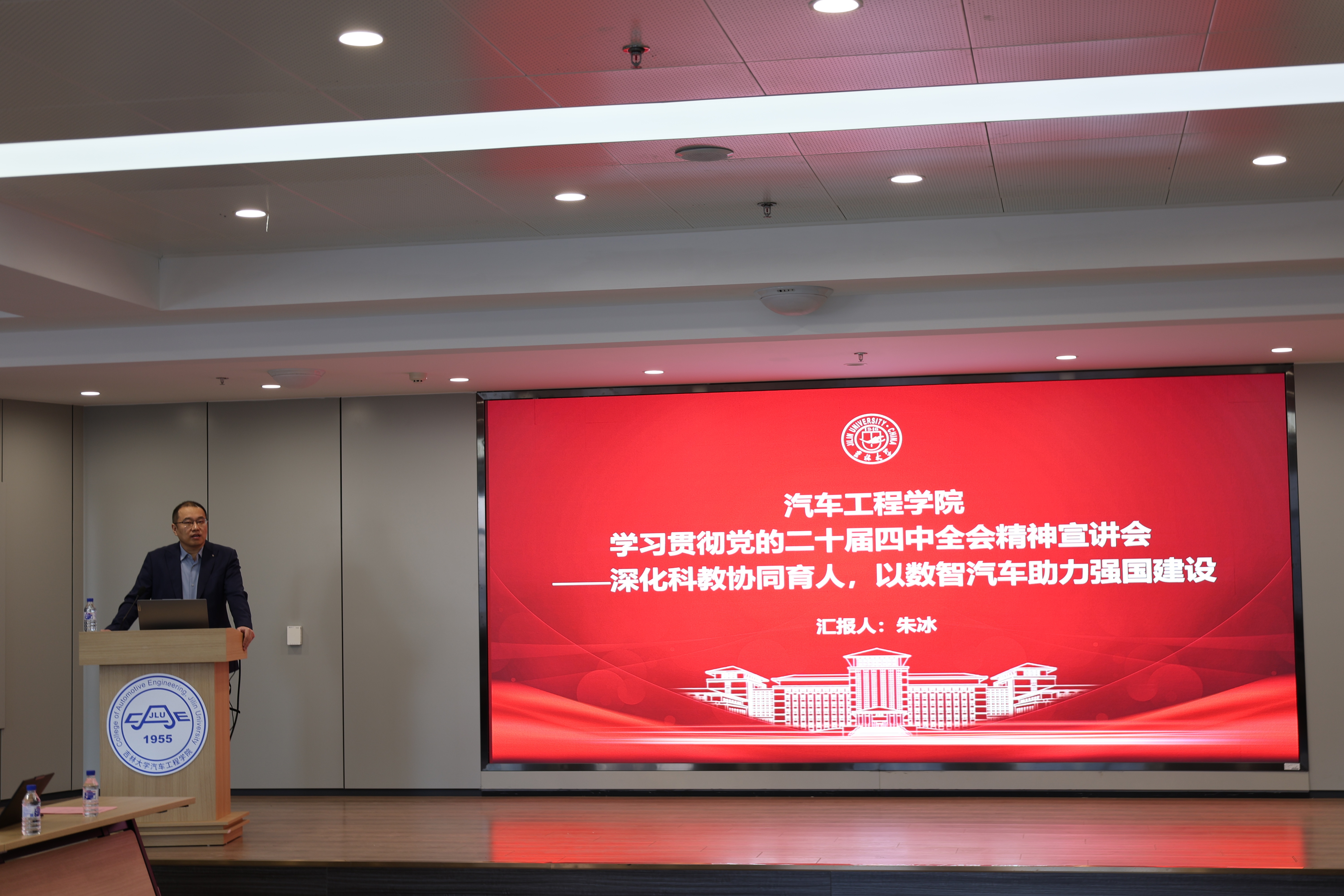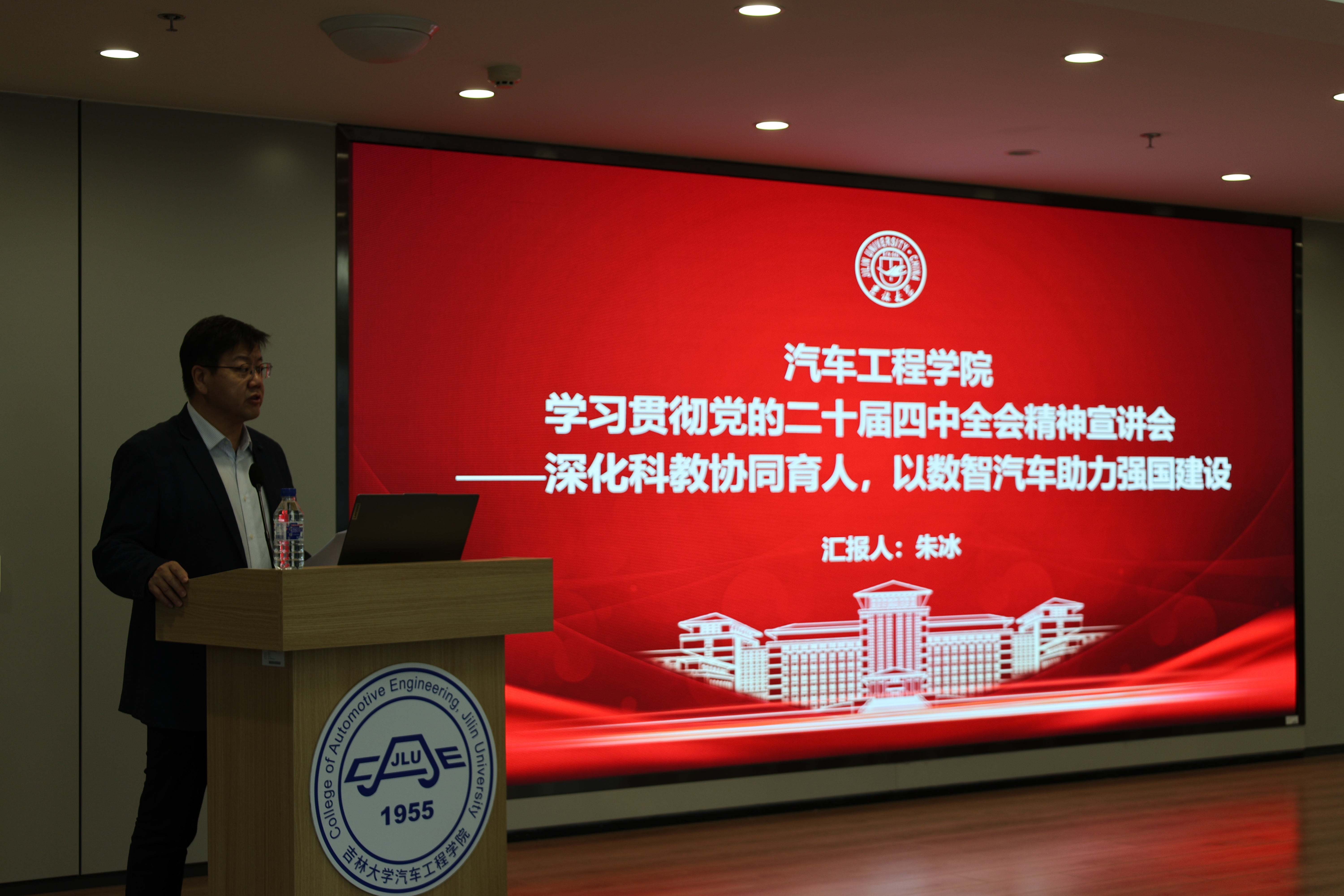 会上,朱冰教授以“深化科教协同育人 以数智汽车助力强国建设”为主题,系统阐述了党的二十届四中全会的重大意义,深入解读了“十五五”时期经济社会发展的指导方针和主要目标。结合富豪娱乐城 发展规划与中心工作,朱冰表示,一是抓学科、建学科,以一流学科引领一流富豪娱乐城 建设,结合汽车行业发展趋势,以“数智汽车”为着力点,创设一级交叉学科新引擎。二是服务国家战略,布局国家急需专业,通过产教融合、科教融汇、国际融通,创建数智汽车人才培养新方案。三是聚焦国家战略需求,从极智动力、数智底盘、智能座舱、自动驾驶等方面支撑汽车产业科技自立自强,创新汽车研究新高地。四是引育并举强化人才队伍建设,一体推进教育、科技、人才发展,启动富豪娱乐城 十佳研究生海外培养计划,创立引育人才新路径。他强调,全院师生要以党的二十届四中全会精神为指引,聚焦国家战略需求,将学习成果转化为推动富豪娱乐城 内涵式发展的实际行动,为实现高水平科技自立自强贡献吉大汽车智慧和力量。