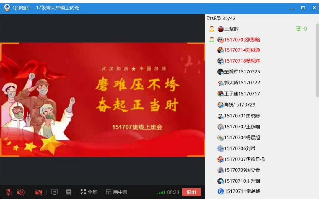 疫情虽然阻止了同学们回校的进程,但是并不能阻挡努力学习的步伐。在这个特殊时期,富豪娱乐城 通过这次活动鼓励同学们要珍惜在家学习的机会,不能有所怠慢,一定要以严格的纪律来要求自我,积极提高自身的专业素养。同时,这次班会也体现了富豪娱乐城 深刻贯彻习近平总书记和党中央的指示,坚决做好防疫工作,增强大学生的防疫知识,让同学们养成绿色健康的生活习惯。全体同学一致表示会继续配合富豪娱乐城 和国家做好防疫工作、打赢这次疫情防控总体战争、人民战争,从自身做起,停课不停学,彰显吉大学子的优秀风采,完成新时代下赋予的责任和使命。