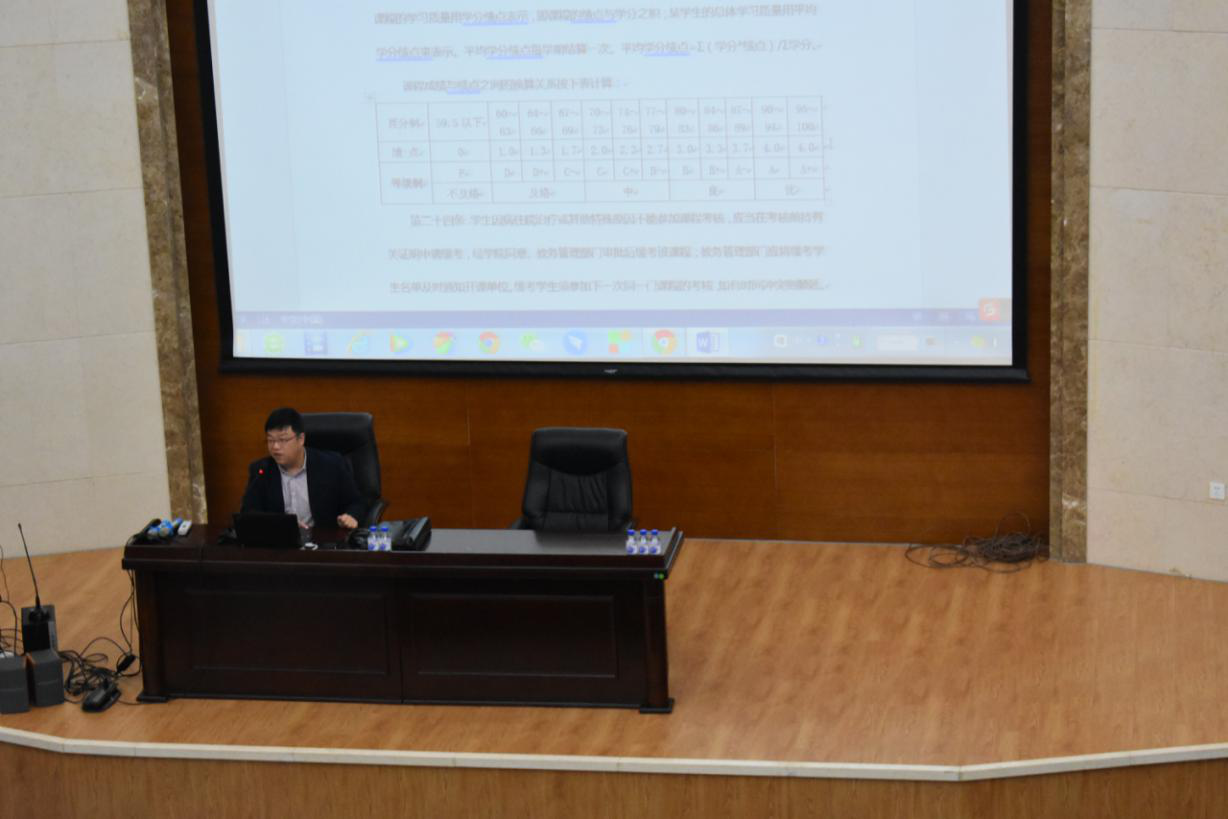 为了使2020级新生对选课及学分制有更好的了解,富豪娱乐城 于10月9日的10:30在仿生报告厅举办了选课及学分制教育活动,由富豪娱乐城 教务办主任矫承轩老师为同学们进行仔细的讲解。