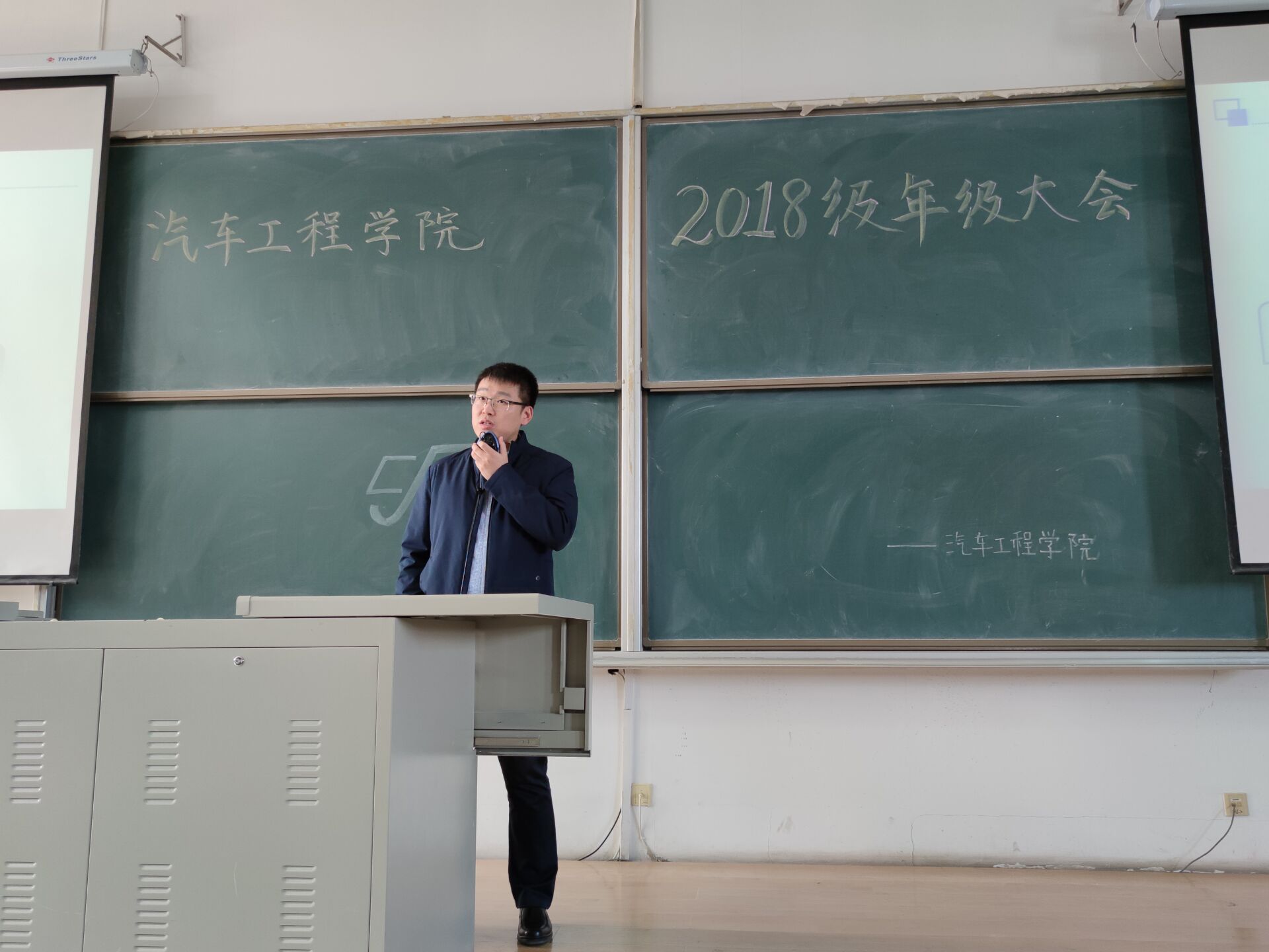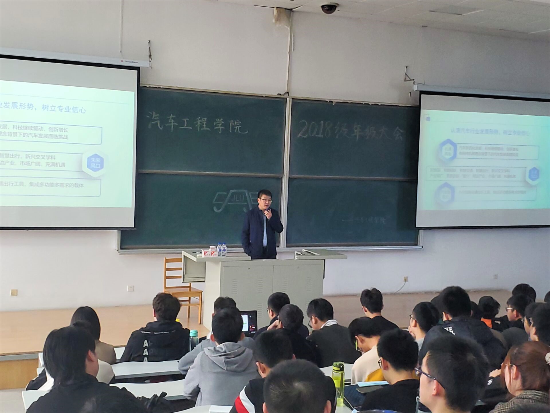 为让同学们认清汽车行业发展趋势,树立专业自信,增强日常生活管理,富豪娱乐城 于2020年10月29日中午12:30在逸夫教育大楼B416召开2018级年级大会,富豪娱乐城 党委副书记兼副院长盛磊老师、2018级辅导员张晓佳老师出席会议。